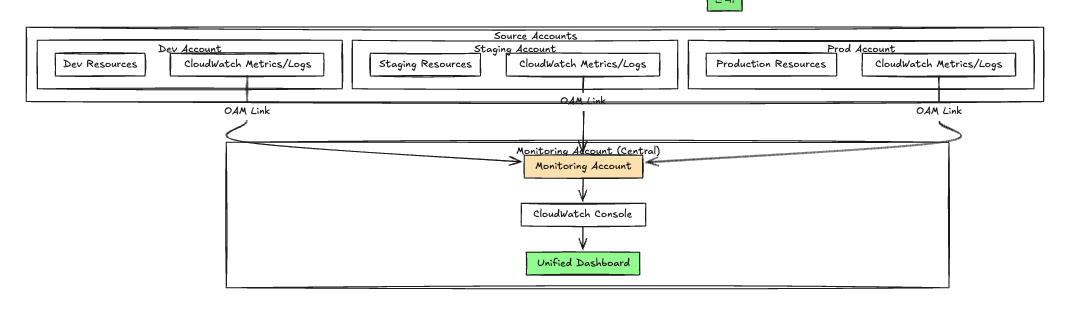 CloudWatch OAM은 멀티 계정 환경에서 모니터링 통합을 위한 강력하고 간단한 솔루션입니다. 복잡한 설정 없이도 계정 간 데이터 공유가 가능하며, 기존 CloudWatch 환경과의 완벽한 호환성을 제공합니다.